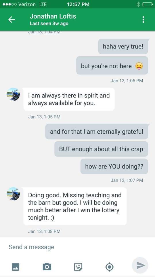 I felt that tug in my gut when he said that, but I ignored it. I felt that same tug later on when he messaged me and said, nearly verbatim, what my grandfather had said before he passed: “I’m there in spirit.”