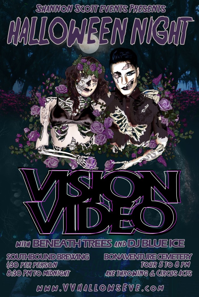 What I’m currently proudest and most excited to announce is our Halloween Night concert that has been a few years in the making! Vision Video is one of my favorite bands, and to bring them to Savannah is a dream come true. I was beyond excited to create the design for posters and marketing, and I hope you dig it, too!